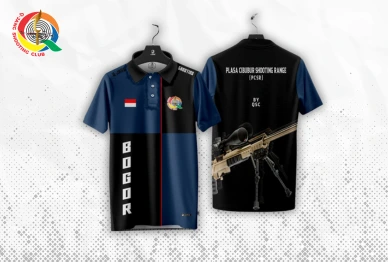 Berwarna hitam-biru, dilengkapi gambar senapan sniper, logo QSC, dan bendera Indonesia. Detail "PCSR Bogor" menonjolkan identitas lokal, ideal untuk penggemar menembak yang menghargai patriotisme dan gaya.